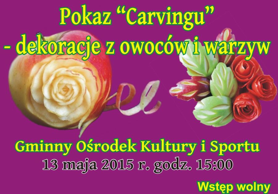 13 maja w ramach zajęć Koła Kulinarnego działającego przy naszym ośrodku odbył się pokaz carvingu. Przygotowały go Panie Grażyna Czyrnia i Agnieszka Bojkiewicz z Zespołu Szkół im. St. Staszica w Małkini Górnej. Serdecznie dziękujemy Paniom za podzielenie się swoją wiedzą i prosimy o więcej :) galeria